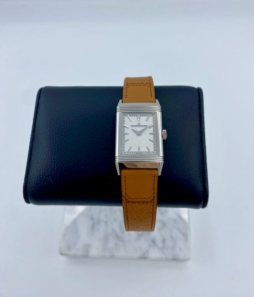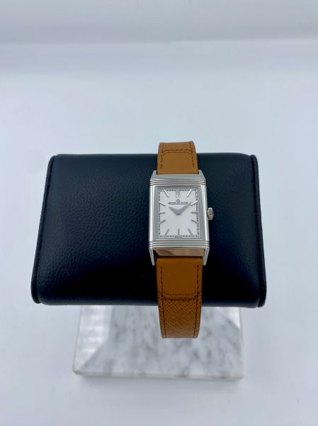 Uutta vastaavassa kunnossa oleva Jaeger-LeCoultre Reverso Tribute Monoface valkoisella taululla. Klassinen herrasmiehen valinta. JLC ranteessa et hae huomiota, arvostat hiljaisuutta ja tiedustat itsesi sekä kellosi arvon.