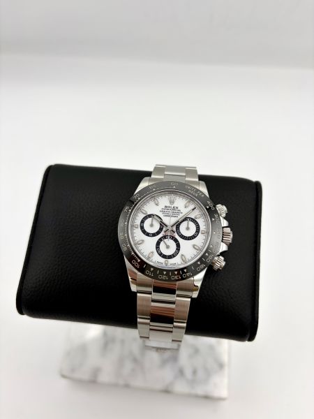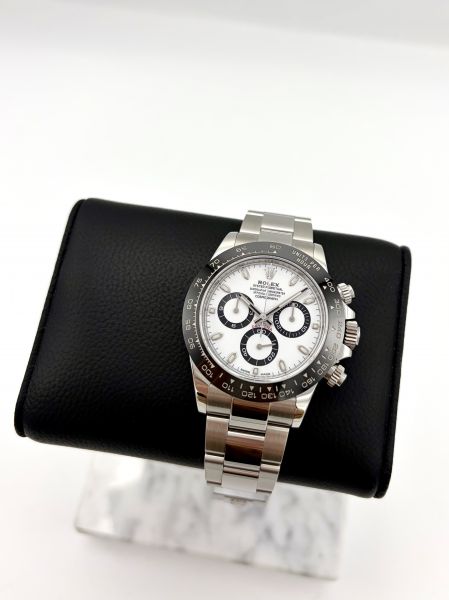 Tuotannosta poistunut Rolex Daytona 116500LN sillä kaikista halutuimmalla tauluvaihtoehdolla. Tunnetaan myös nimellä Panda. Kello on erinomaisessa kunnossa.