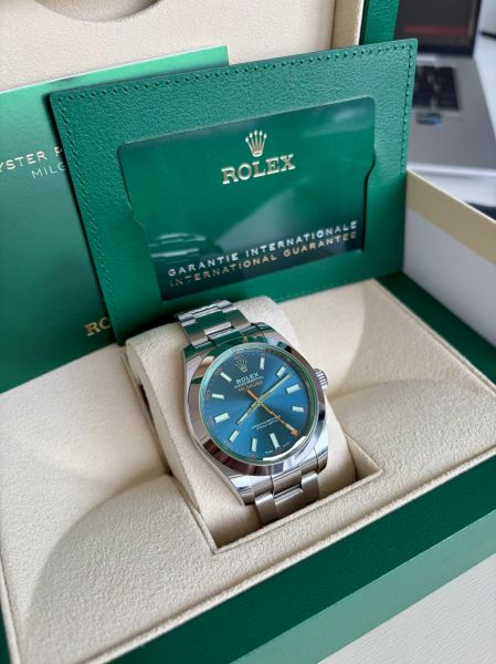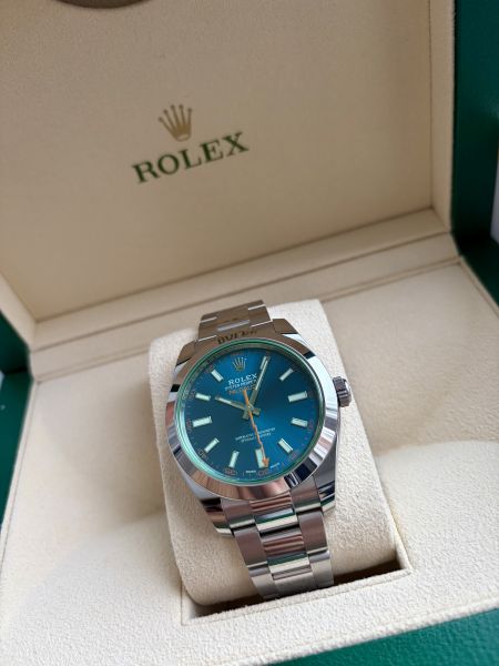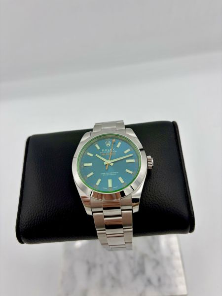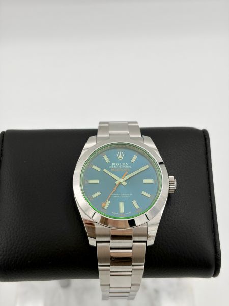 Tuotannosta jo poistunut Rolex Milgauss hienolla ja harvinaisella sinivihreällä taululla. Kiillotamaton yksilö ensimmäiseltä omistajalta.