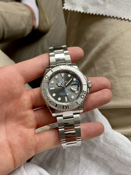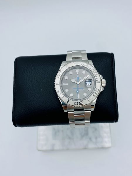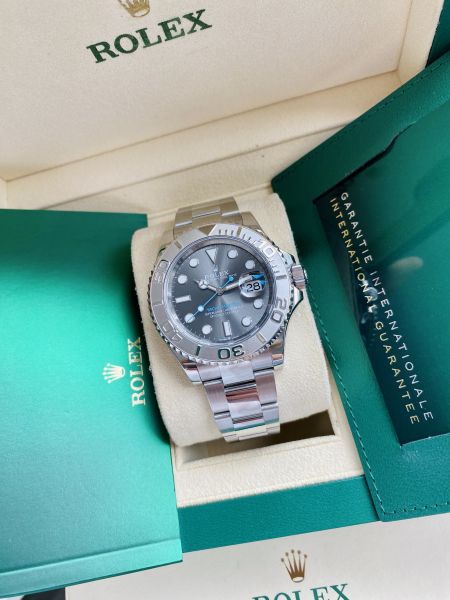 Uudenveroisessa kunnossa oleva Rolex Yacht-Master 40mm ref 126622. Vaalean sininen Yacht-Master teksti taulussa ja sininen viisari yhdistyy erinomaisesti harmaaseen rhodium tauluun, luoden erittäin tyylikkään kokonaisuuden.